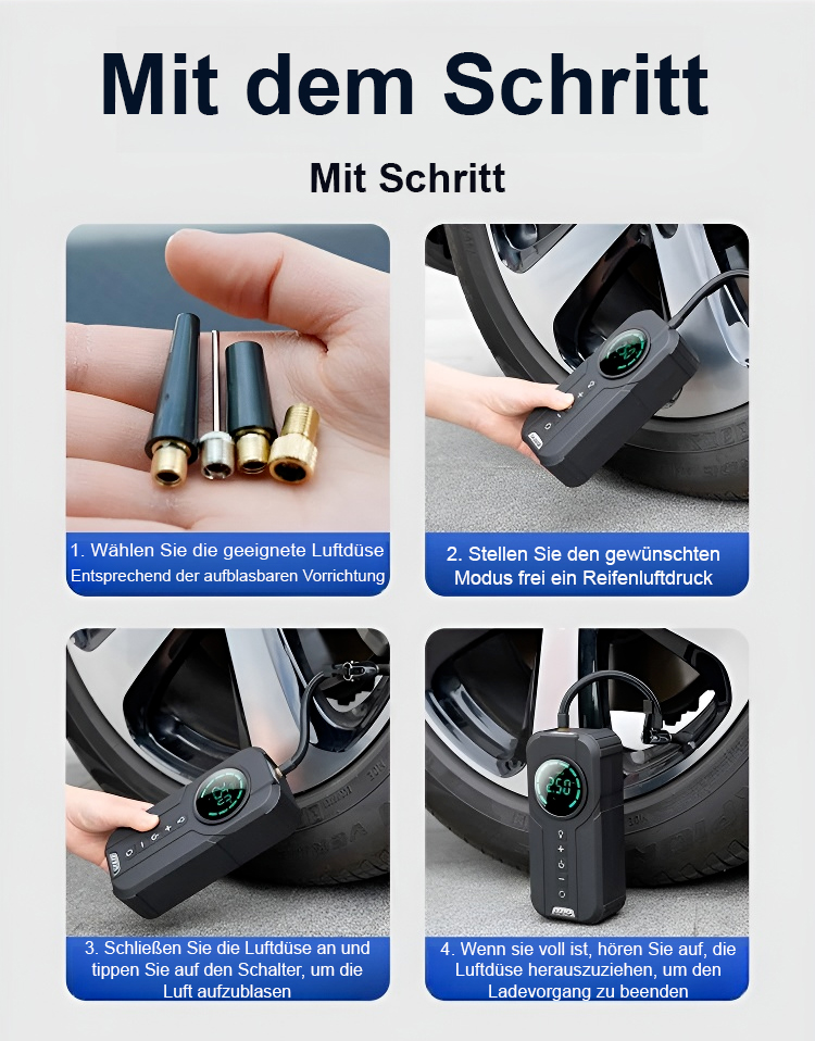 ✅Multifunktional: Kombination aus Reifenfüllung, Nachtbeleuchtung und Powerbank.